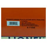 86 Modern Lionel O Gauge: 11861 Chesapeake And Ohio PS-4 Flat W/Trailers 2 Pack OB And Set Box