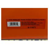 354 Modern Lionel O Gauge: 21875 CSX Husky Stack 2 Pack W/Die-Cast Metal Bodies/2 Containers For Each OB/Set Box
