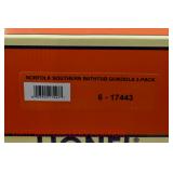 357 Modern Lionel O Gauge: 17443 Norfolk Southern Bathtub Gondola 3 Pack Factory New In OB/Set Box/Mailing Carton