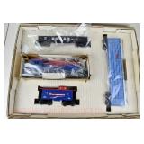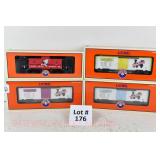 74 Rail King O Gauge: (2) 30-7832 Iron City Beer #3 Reefers, 74173 Baltimore Orioles Boxcar, 7606L MTH Lines Flat/Ertl Backhoe OB