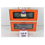 369 Modern Lionel O Gauge: 27439 Norfolk Southern Heritage Unibody Tanker, 17473 NYC PS-5 Gondola W/Containers OB