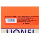 368 Modern Lionel O Gauge: 11873 Chesapeake And Ohio Offset Hopper 3 Pack/Die-Cast/Opening Hatches, Factory New In OB/Set Box/Mailing Carton