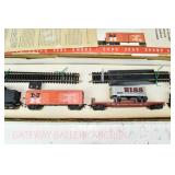 383 Postwar Lionel O Gauge: #1459WS Freight Set Components: 2020/2020W PRR Turbine, 3469 Automatic Dump Car/Tray, 3656 Armour Cattle Car/Corral/Cattle, 6465 Sunoco Tanker, 6411 Flat/Logs, 6357 Caboose (CAB Roof Repair), 6019 Track Set, Instructions Etc. 5 Tattered Boxes No Set Box