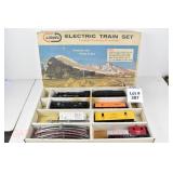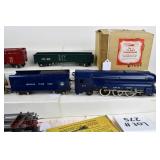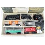 26 Postwar Lionel O Gauge: Scout Set #1113: 1120/1001T Loco/Tender, 1002 Gondola, 1005 Sunoco Tanker, 1007 Caboose OB And Set Box (Some Flaps Missing)