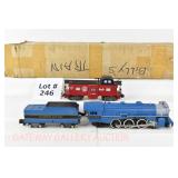 30 Prewar Lionel O Gauge: Set #140W: 224E/2224W Loco/Tender (Needs 1 Eccentric Rod), (2) 2460 Pullmans, 2641 Observation OB (Missing Flaps) And Set Box