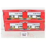 37 MTH O Gauge: 20-98229 CP Rail And 98230 Tobacco Valley Lumber Center Beam Flatcar/Lumber Load OB