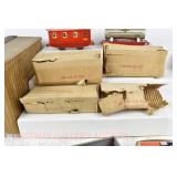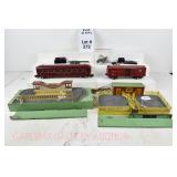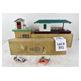 351 Postwar Lionel O Gauge: 356 Freight Station/Baggage Carts OB, 362 Barrel Loader In Box W/Inserts, 145 Automatic Gateman OB