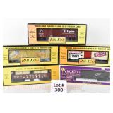 78 Rail King O Gauge: 30-7446 2000 Millennium PRR Gold Boxcar Factory New In Mailing Carton, 74182 Pittsburgh Pirates Boxcar, 7617 MTH Transport/64 Mustangs, 7378 Sunoco Tanker OB
