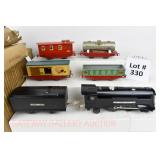 333 Prewar Lionel O Gauge: Components Of Set #236: 262/262T Loco And Tender (Corner Of Pilot Broken And Wheels Missing From Trailing Truck), (2) 607 Pullmans, 608 Observation (All Have Rust On Roofs) 4 Box Remnants
