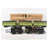 330 Prewar Lionel O Gauge: Lionel Junior Set #6201E: 1689EX/1588T Loco/Tender, 1512 NYC Gondola, 1514 Erie/Baby Ruth Boxcar, 1515 Sunoco Tanker, 1517 NYC Caboose OB, Instructions And Set Box