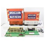 337 Postwar Lionel O Gauge: 3662 Operating Milk Car/Platform/Cans/Inspection Slip OB (No Insert And Flaps Missing, 3656 Operating Cattle Car/Corral/Ramp/Cattle/Car OB And Insert, 3472 Operating Milk Car/Platform/Cans/UCS Section/364C And Lock-On No Boxes