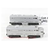 341 Postwar Lionel O Gauge: 2033 Union Pacific Silver Alco AA Diesels No Box
