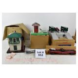 352 Postwar Lionel O Gauge: 460 Piggyback Transportation Set OB, 445 Operating Switch Tower OB, 145 Automatic Gateman OB