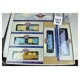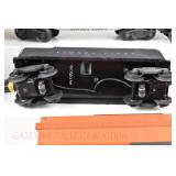 46 MTH O Gauge: (3) Tank Cars: 20-96020 NASA, 90002e Nickel Plate, 9200L Burlington Northern; 98160 Nickel Plate Flat/Greyhound Indianapolis Die Cast Bus OB
