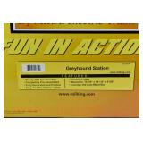380 Rail King O Gauge: 30-9040 Greyhound Bus Station Factory New In OB/Mailing Carton; (2) 30-50009 Greyhound Busses OB