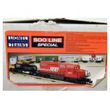 390 Modern Lionel O Gauge: #11738 1993 SSS Soo Line Special: GP38-2 Diesel W/Dual Motors/Diesel Horn, Soo Line REA Reefer, Soo Line PS-2 Soo Line Hopper, Illinois Central TTUX/Trailers, Goodyear Tanker, Soo Line Lighted EV Caboose Factory In OB/Set Box
