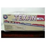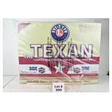 399 Modern Lionel O Gauge: #30142 MKT/Frisco The Texan Train Set: Texas Special FT AA Diesels W/TrainSounds, Dual Motors, Frisco 4 Bay Hopper/Coal, Frisco Tanker, Texas Special Boxcar, MKT Stock Car, Texas Special Lighted E/V Caboose, 52" X 97" Track Layout In Factory Plastic Wrapped Set Box with Mailing Carton