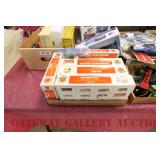 73 Rail King O Gauge: 30-7629 MTH Transport/Ertl Fire Truck, 7606L MTH Lines/Ertl Backhoe, 7378 Sunoco And 7379 Texaco Tankers OB