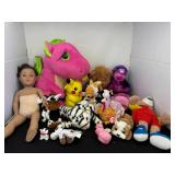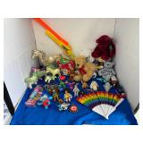 Lot #218 - Assorted Toy Lot: Plush Animals, Dolls, Unicorns, and Rainbow Fan