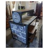 Lot #92 - Rustic Industrial-Style Display Table with Inspirational Sign