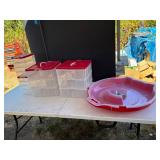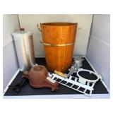 Lot #247 - Household Items Lot: Metal Bucket, Plastic Basket, Decorative Aquarium Base