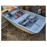 Lot #98 - Vintage Fiberglass Boat w/ New Seats, Pole Holders, & Minn-Kota Trolling Motor