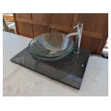 Lot #186 - Modern Glass Vessel Sink with Chrome Faucet & Granite Base