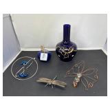 Lot #223 - Cobalt Blue Vase, Glass Pumpkin, Metal Insect Sculptures