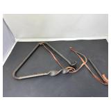 Lot #222 - Vintage Farm Tools - Iron Triangle with Leather Straps and Hook
