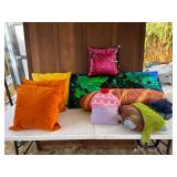 Lot #226 - Colorful Cushion and Pillow Lot - Decorative Sequin, Fun Food Shapes, and Cozy Textures