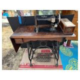 Lot #236 - Antique Marguerite Treadle Sewing Machine with Storage Drawers and Accessories