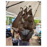 Lot #252 - Large Metal Ship Sculpture - Detailed Nautical Decor