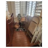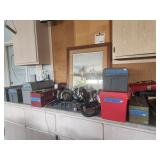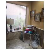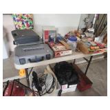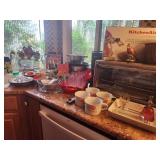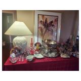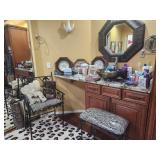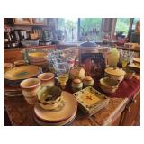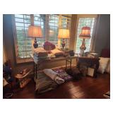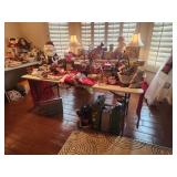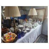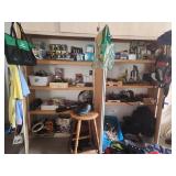 King master bedroom set; Upholstered chairs; curved red sofa; Office desk; Vintage queen bed frame; Lamps/area rugs; Patio heaters; Pfaltzgraff Pistoulet dishware set with serving pieces; Collectibles; Electronics; Dinette set; Framed and canvas art; Bicycle; BLUE OX with accessories; Patio table set; Dining room table set with matching lighted curve glass hutch; nice Ladies/men and young girls clothing; Window screens; large Metal shelving; Smoker; Twin headboard; Car ramps; Power sprayer; BBQ; much household/ decor and garage items |