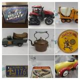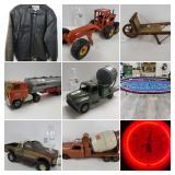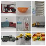 7/27/25 - July Special Antique & Collectibles Consignment Auction Bidding Closes: Sunday, July 27th, 2025, Soft Close Starting at 6pm, 1 lot closes every 10 seconds with a 2-minute extended bidding. https://bidtrice.com 701 Lincoln St, Denton, Maryland 21629 1: Brown M&M Character Display with Glasses and Open Storage Back ~ 2: Cast Iron Fireplace Andirons with Ornate Design ~ 3: Tonka No. 5 Red Toy Fire Truck with Hoses and Ladder ~ 4: ERTL 1/64 AFS Connect Steiger 580 Quadtrac Die-Cast Model ~ 5: Worrell Dairy Frank Schauber Chestertown, MD Milk Bottle ~ 6: Small Uranium Green Glass Pitcher with Geometric Pattern ~ 7: Harris Composition Poker Chips in Original Box ~ 8: Tonka Red Metal Toy Truck with White Tires and Open Bed ~ 9: John Deere ’50’ Tractor 1/16 Scale Die-Cast Metal Model in Box ~ 10: Pyrex 1.5 Quart Divided Dish with Glass Lid, Snowflake Design, Made in USA ~ 11: Genuine Zippo Rotating Display Case With No Key ~ 12: 3 Green Uramium Depression Glass Mixing Bowls with 1 Diamond Crystal Shaker Salt Mark ~ 13: GI Joe Collector’s Case with Assorted Action Figures and Accessories (1984) ~ 14: Budweiser Light Label Sign Electric Wall Clock by D&S Displays ~ 15: 1934 John Deere Model A Ertl 1/16 Scale Die-Cast Tractor with Original Box ~ 16: Buddy L Army Searchlight Truck with Rotating Spotlight ~ 17: Antique Brass Buggy Lamp Lantern ~ 18: 1923 Maryland License Plate ~ 19: 6 Fairykins Play Sets by Marx in Original Packaging ~ 20: Red Pyrex Oval Dish Marked Trade Mark Made in USA ~ 21: Large Stoneware Crock with Blue Star and ’12’ Mark, Lid is Included but Broken ~ 22: AMF Unit 507 Pedal Fire Truck with Metal Accents ~ 23: 2 Scooters with Brown and Blue Frames ~ 24: Blue Pedal Car Police Tricycle With Radar Patrol Decals ~ 25: Blue Ford 9700 Toy Tractor With Matching Pull-Behind Wagon ~ 26: Red Tonka Toy Truck With Yellow and Blue Detailing and Black Roll Bar ~ 27: Pyrex 403 Mixing Bowl with Blue Floral Pattern, 2.5 Quart Capacity ~ 28: Army Engineers Metal Toy Dump Truck with Tipping Bed ~ 29: Red Metal Toy Trailer with Ny-Lint Ford Wheels ~ 30: Shiloh Hurlock, MD Glass Milk Bottle with Red Logo ~ 31: Griswold No. 8 Cast Iron Chicken Pan with Handle #777 ~ 32: 1919 Maryland License Plate ~ 33: Cast Iron Red Train Car With ‘Washington 44’ Markings ~ 34: Tonka Green and Yellow Dump Truck with Black Tires ~ 35: Buddy L Pressed Steel Tow Truck and Jeep Combo ~ 36: Cast Metal Camp Heat Stove with Compact Design ~ 37: Ertl Delaware Electric Co-op Greenwood Toy Utility Truck With Bucket Arm ~ 38: Vintage Postcards and Ephemera ~ 39: Green Glass Juicer With Handle and Ribbed Design ~ 40: Tonka 4000 Dump Truck and Grader Construction Toys ~ 41: Fisher Price Toy Figures, Vehicles, and Accessories ~ 42: Metal Storage Box With Latch Closures and Handles ~ 43: Tonka Vehicle Carrier Toy with Blue Cab and Attached White Trailer ~ 44: Tonka Red Toy Jeep with Black Top and White Wheels ~ 45: Playskool McDonald’s Playset No. 430 With Figures and Accessories ~ 46: Disney Traditions Showcase Collection ‘Romantic Waltz’ Cinderella Figurine ~ 47: Pyrex 443 Orange Wheat Pattern Bowl With Handles, 2.5L ~ 48: 1952 GMC Half Rack Stake Truck 1/34 Scale Die-Cast Model by First Gear ~ 49: 4 Uranium Glass Cups With Fluted and Double-Handled Designs ~ 50: Tonka Ser-Vi-Car Toy Scooter with Tipping Bed and Steering Handle ~ 51: Oliver 1555 Hydra-Power Drive Die-Cast Tractor Model ~ 52: Fisher-Price Phonograph with Accessories and Colored Records ~ 53: Tonka Military Jeep Pair with GR 2-2431 Markings ~ 54: Longaberger Basket with Metal Wagon Cart and John Deere Liner ~ 55: 3 Stackable Pyrex Mixing Bowls with Wheat Pattern ~ 56: White Toy Camper Van with Green Stripes and W Logo ~ 57: Engraved L. Richards Percussion Cap Pistol with Curved Handle ~ 58: Fisher-Price Play Family Village Toy Set ~ 59: Blue Metal Toy Truck With Silver Topper and Label ~ 60: International Harvester Model 1466 Die-Cast Tractor with Accessories ~ 61: Ertl Ford TW-5 FWDA Tractor 1/32 Scale Die-Cast Model in Box ~ 62: Antique Niagara #3 Hand Crank Bench Grinder “The Carborundum Co” Niagara Falls NY ~ 63: Pyrex 543-B 1 1/2 Qt Glass Dish with Snowflake Pattern ~ 64: 1931 Maryland License Plate ~ 65: Red 1948 Ford F-1 Pickup Truck Model with Display Base ~ 66: Elvis Presley PEZ Collectibles and Action Figures ~ 67: Uranium Glass Plates with Reactive Glow Under UV Light ~ 68: Fisher-Price Toys Including Vehicles and Figures ~ 69: Vintage Metal Toy Truck with Red Cab and Blue Cargo Section ~ 70: Dairy-Themed Collectibles Including Tools, Memorabilia, and Advertising Items ~ 71: Uranium Glass Plates and Bowls with Fluorescent Glow ~ 72: Griswold No. 9293 Cast Aluminum Corn Stick Pan Made in USA ~ 73: Sturdi Auto Transport Toy Truck with Trailer in Red and Green ~ 74: Toy Farm Playset with Barn, Silo, Figures, and Accessories ~ 75: 2 Pyrex Mixing Bowls in Green and Yellow ~ 76: Black Metal Toy Truck With Silver And Yellow Accents ~ 77: 1952 GMC Dry Goods Van and 1957 International R-190 Fuel Tanker Models ~ 78: Glass Lance Jar with Red Metal Lid and Offset Branding ~ 79: Blue Glass Rooster-Shaped Lidded Dish on Pedestal ~ 80: Case IH Magnum 305 1:32 Die-Cast Model by Ertl in Original Packaging ~ 81: Uranium Glass Dishware With Etched Floral Designs ~ 82: Green Buddy L Army USA-5415 Toy Truck With 6 Wheels ~ 83: 1980 Maryland Farm Truck License Plate ~ 84: Cobalt Blue Glass Hen on Nest Covered Dish ~ 85: Sierra Nevada Brewing Co Neon Light Sign With Power Adapter ~ 86: Cast Iron Horse-Drawn Circus Wagon With Driver and Animals ~ 87: Hubley Cowboy Repeating Cap Pistol with Original Box No. 275 ~ 88: Black Americans Red F&F Mold & Die Works Figurines Salt and Pepper Shakers ~ 89: Blue Glass Jar With Lid Containing Colorful Marbles ~ 90: Nesting Pyrex Mixing Bowls with Butterfly Gold Pattern and Solid Green ~ 90a: M.T.H. 2001 McDonald’s Drive-Thru Model With Sign and Details ~ 90b: Cart With Pull Handle and Wheels, 18″x 12