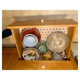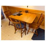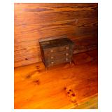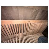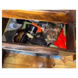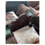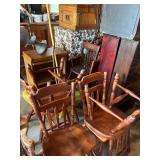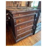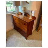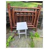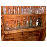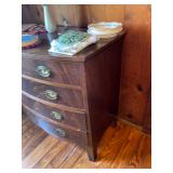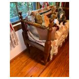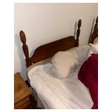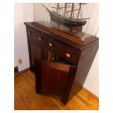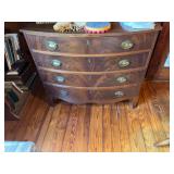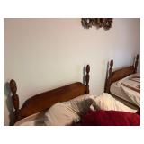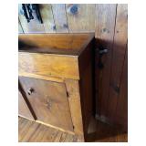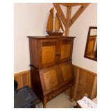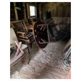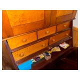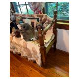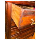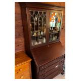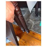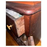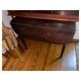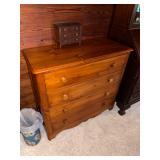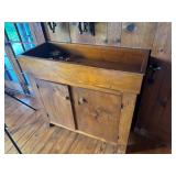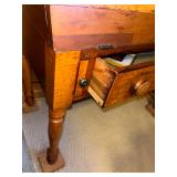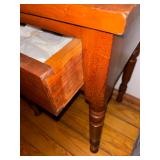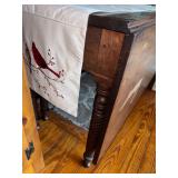 FURNITURE: Mahogany dropfront secretary, Mahogany chest of drawers, Mahogany work tables, Victorian dresser, Antique dry sink, Early washstand, Set of mahogany twin beds (oversized), Cherry dresser, Dropleaf tables, Couch, Kitchen set, Painted green porch bench, Early large wooden storage chests, End tables, Rocker, Oak hutch, Maple dresser, 3 Pc. Bedroom set, Black pantry stand, Gun rack, Early day bed, & More!