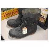 649. Pair of WWII Nazi Hand Carved Dutch Clogs – Painted “L.B.M.F.7” w/Navy Anchor, 88 Cartoon Cannon, and Swastika