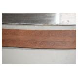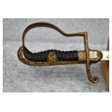 720. WWII German Nazi Navy Officers Sword – w/Red and Green Eyes on Lions Head – Correct Portepee – 32½” Overall Length Outside of Sheath – Sheath Leather has Shrunk due to 45 Years of Display – Sword does Not Fit Well