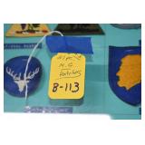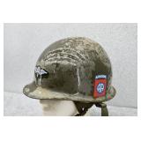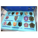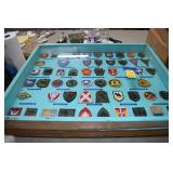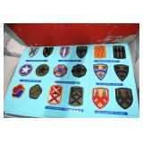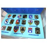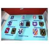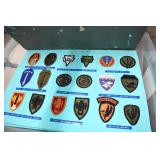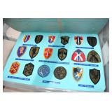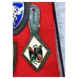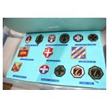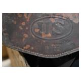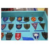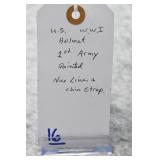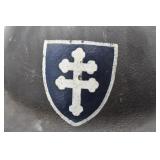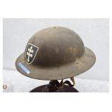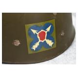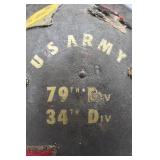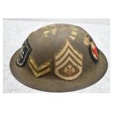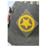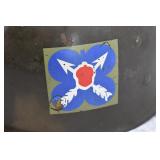 18. U.S. WWI Helmet – Marked on Strap “Howard S. Samson” – Marked Both 34th Div. & 79” Division – Stamped “ZA52” – w/7 Shoulder Patches & Insignia Glued to the Outside of Helmet – Possible Part of a Larger Group