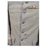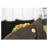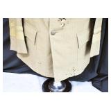 725. Nazi German Lt. General Uniform – Authentic 4 Pocket Tunic w/Lt. General Shoulder Boards Made of Fine Twill Cloth. The Straight Leg Trousers Are Moth Damaged – The Breast Eagle Was Cut Off in Accordance w/the Unconditional Surrender of the Nazi Armed Forces – The Tunic Has Green Buttons Rather Than Gold Found on Similar Uniforms – “The Aiguillette Was Made of Gilt Cord for General Officer’s” Source: Uniforms & Traditions” Augolia & Schlicht, R.J. Bender Pub Chapter 12, Page 107. – The Edelweiss Patch is Sewn on the Right Shoulder of the Tunic, The Stitching May be Post WWII – U.S. Vet Bring Back (Lancaster, PA), The Original Owner of These Garments is Unknown – Displayed in the Museum From 1977-2024
