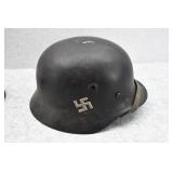 1. Authentic German Nazi Helmet w/Unknown Swastika Paint – Possible N.S.D.A.P. Use