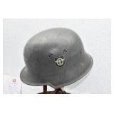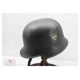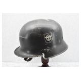 628. WWI German Steel Combat Helmet w/Post WWI Modified Liner – “S.S.” Decals are Questionable