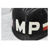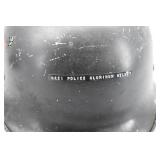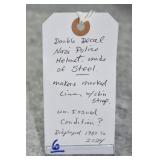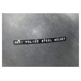 6. Double Decal Police Helmet Made of Steel – Makers Marked Liner w/Chin Strap – Possible Un-Issued Condition – Displayed 1980-2024