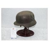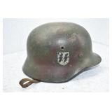 20. Single Decal “SS” Combat Helmet – Issued to “SS. Gren. Michel.” – Authentic Camouflage Helmet
