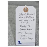 9. Steel “Banded” Police Pattern German WWII Helmet – Early (?) – Green Paint – Note: Painted Cotton Chin Strap