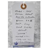 12. Model 1935 German Helmet – Possible Luftwaffe – Brown D.A.K. Paint – Gray Paint Inside Helmet – “Spenk” Marked Liner – Lightly Use Liner Chin Strap