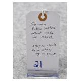 21. German Police Pattern Helmet Made of Steel – w/Original 1960’s Dymo Sticky Tag on Front