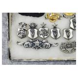 706. WWII Nazi 10-Piece Thin Police Shoulder Boards – 1-Piece Collar Tab – 3-Piece Cloth Patches – 32-Piece Pins – Mixed Authentic and Reproductions