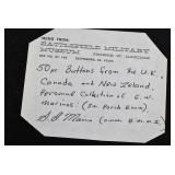 43. 50 Pieces Buttons From the U.K., Canada & New Zealand – From G.W. Marinos Personal Collection (Small Porch Room)