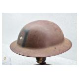 28. U.S. WWI Helmet w/Black Painted “Engineer Castle” on Front – w/Non-Legible Letters on Side – (Shell)