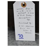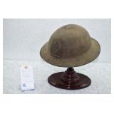 26. U.S. WWI Helmet – Painted 79th Division – w/Authentic 1970’s Blue Dymo Sticky Tag from G.W. Marinos